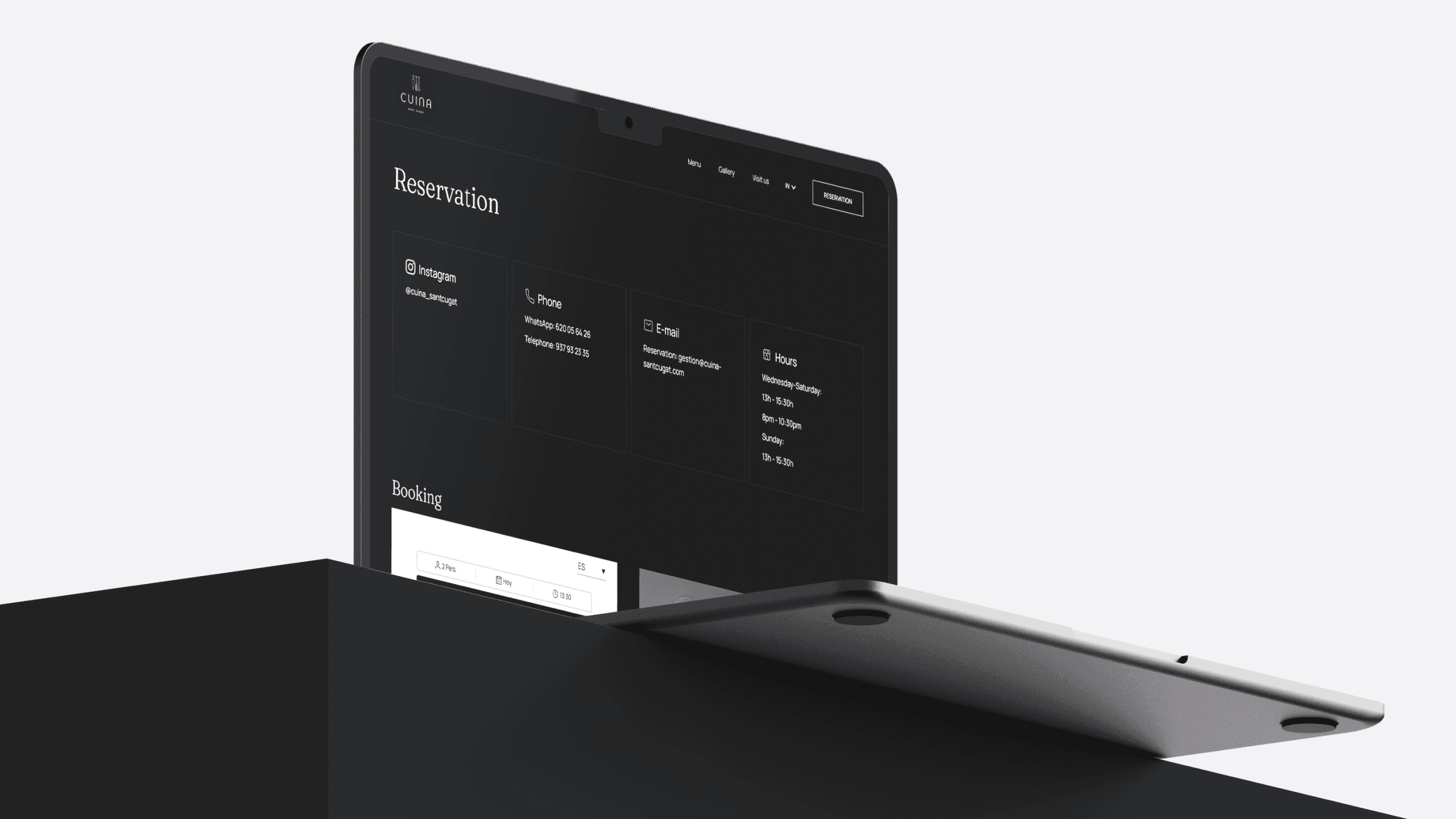For Cuina, we integrated a user-friendly reservation system. Guests can select the number of people, date, and time, then fill out a form with their name, surname, email, and phone number. This simplifies the process and makes it convenient for users.
