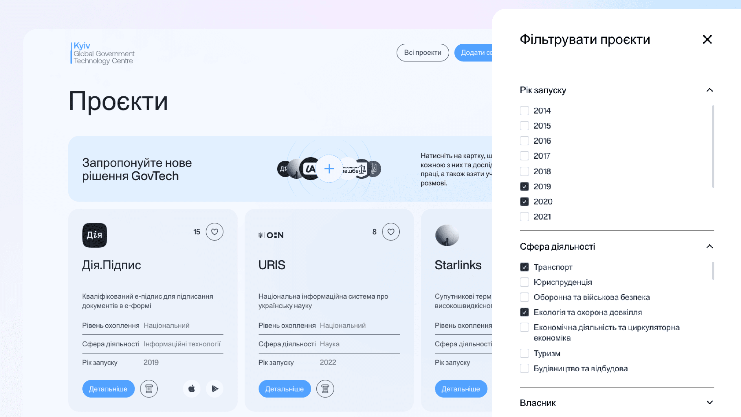 Another key goal is to enable organizations to propose new GovTech solutions and submit requests to feature their projects on the website. Developers, government institutions, and communities can add their own GovTech solutions to the platform, helping maintain complete and up-to-date data on Ukraine’s GovTech landscape.