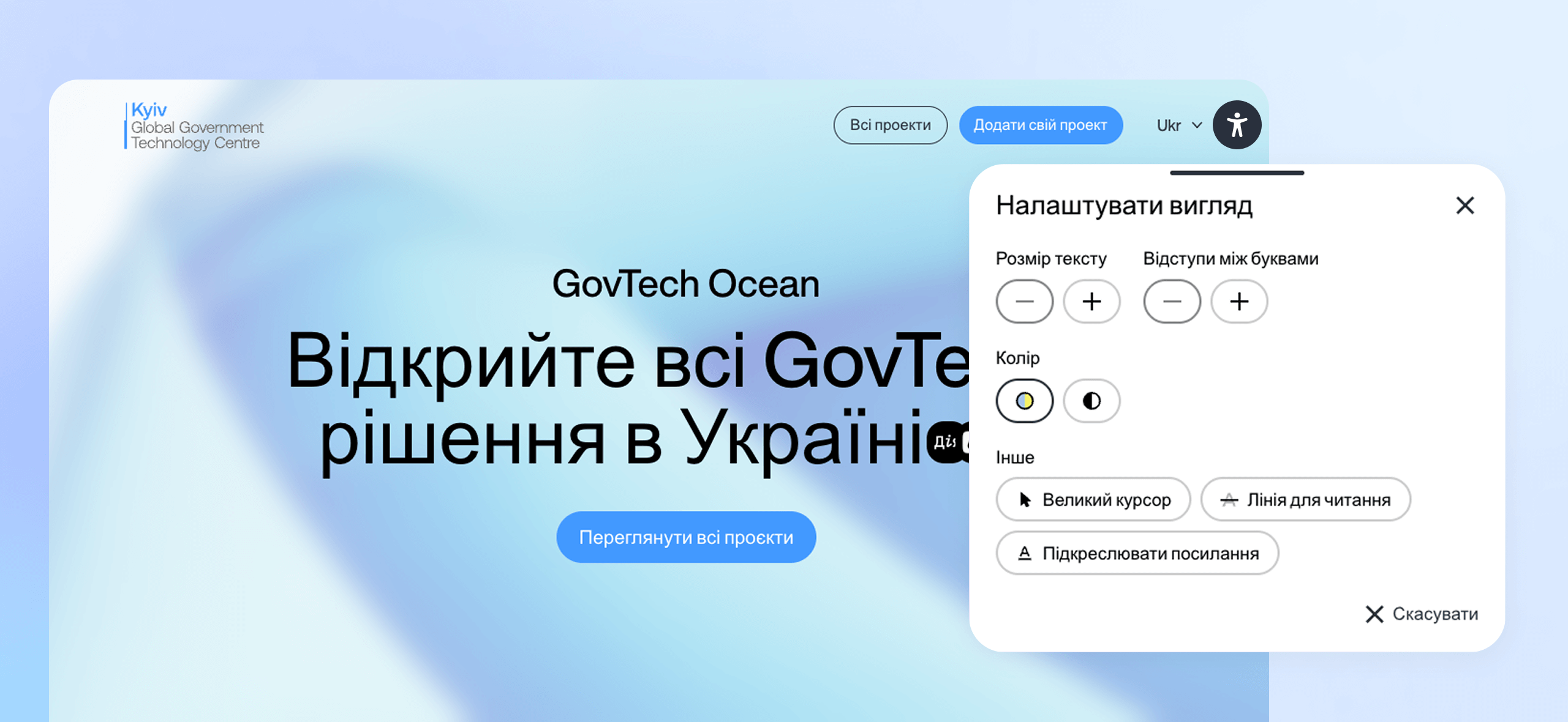 WCAG (Web Content Accessibility Guidelines) is the international standard for digital accessibility. For GovTech projects, where national-level public services are involved, implementing WCAG is not only a mark of quality but also a matter of state responsibility and equal human opportunity. On the Kyiv GGTC platform, we implemented features that allow every user to tailor the interface to their needs. In particular, the site enables users to adjust: