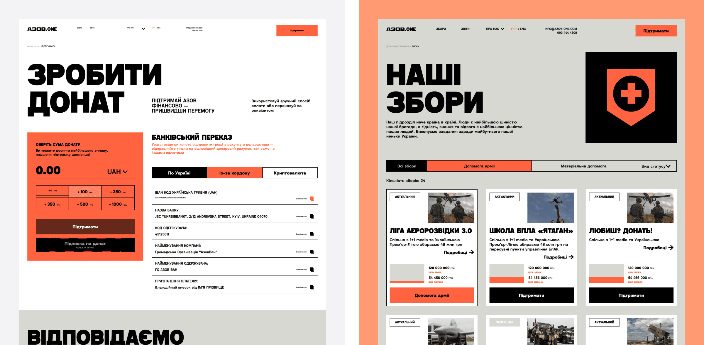 Проєкт AZOV.ONE стане ключовим інструментом для координації зусиль і надання допомоги для 12-ю БрСП «Азов». Наше завдання полягало в тому, щоб забезпечити зручний доступ до інформації про потреби та ініціативи «Азову», а також можна з легкістю підтримати донатом бригаду "АЗОВ" надати можливість легкої та безпосередньої підтримки.
