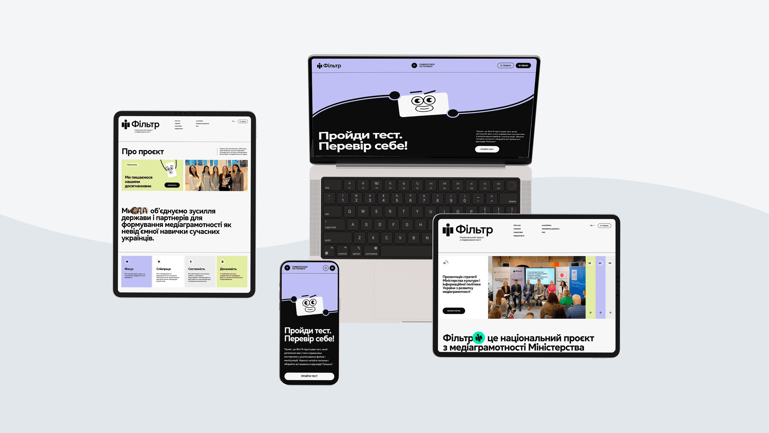 Метою було оновити платформу Фільтр — зробити її сучасною, зручною та готовою до масштабного навантаження. Завдання включали редизайн основного сайту, запуск каталогу проєктів і створення окремої тестової платформи, яка щороку приймає сотні тисяч учасників.