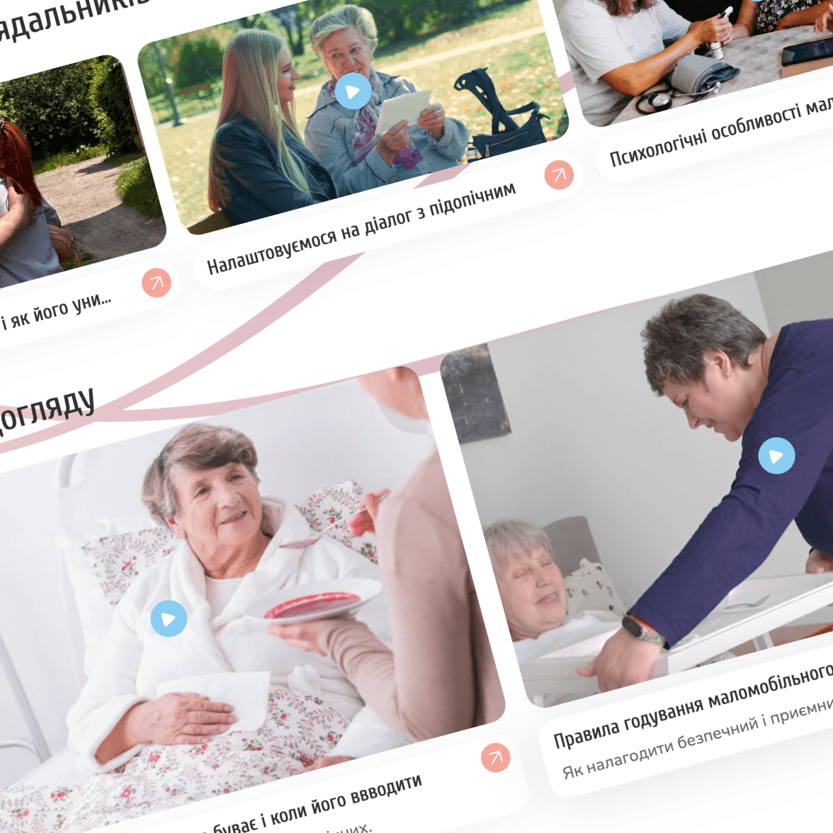 У відповідь на зростаючу потребу в медико-соціальному догляді, ми створили зручний вебсайт на базі CMS WordPress, що забезпечує доступ до освітніх матеріалів, рекомендацій та відеоуроків. Платформа допомагає доглядальникам краще піклуватися про підопічних, надаючи простий інтерфейс для пошуку та управління контентом, адаптований для користувачів літнього віку.